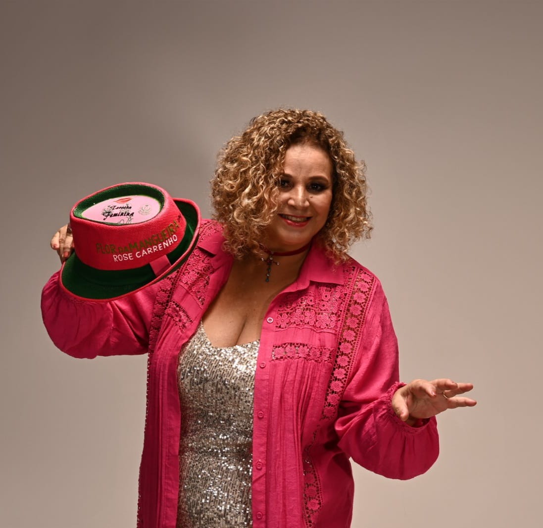 Rose Carrenho é multiartista com trajetória marcada pelo protagonismo feminino na cultura brasileira: idealizadora há 30 anos do grupo As Brasileirinhas, primeiro grupo feminino de samba do Brasil, atua como percussionista, compositora, artesã, estilista, atriz e produtora cultural. Estudou na Escola de Música do Maranhão com Antonio Padilha e Pixixita, criou coletivos de mulheres sambistas no estado, realizou edições do Encontro de Mulheres na Roda de Samba a convite da cantora Dorina (RJ), integrou o grupo A Cor da Sina, escreveu, dirigiu e atuou no musical Amor de Primavera, foi gestora na extinta Maratur colaborando em levantamentos turísticos em Barreirinhas, Ilha dos Lençóis e Cururupu, fundou o jornal Borandá, publicou poesias panfletadas pelas ruas do Centro Histórico e, ainda na juventude, criou em Barra do Corda o bloco feminino “Já é da sua conta”, marco de protagonismo dos anos 1980.